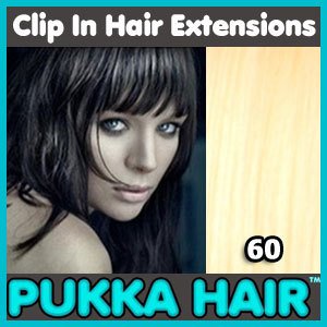 Finally, we can all have the hair styles of super models and super stars without spending a fortune and spending endless hours in hair salons. Whether you want to add volume to fine hair or length to short hair, Clip In Extensions is your solution. Pukka Hair is a leading supplier of High Quality Remy Human Hair Extensions. Our Clip In extensions will remain discretely and securely attached to your natural hair, they can be styled, coloured, cut and treated as desired and are available in a variety of different colours and lengths. To fit, simply part your hair and clip on, it's as easy as that!. The silky Remy Hair blends in with your natural hair to give you a new look in under 5 minutes. Full fitting and Maintenance instructions will accompany your purchase. If you are unsure what colour is suitable for you then visit pukkahairextensions.co.uk and take advantage of our FREE Colour Matching Service.